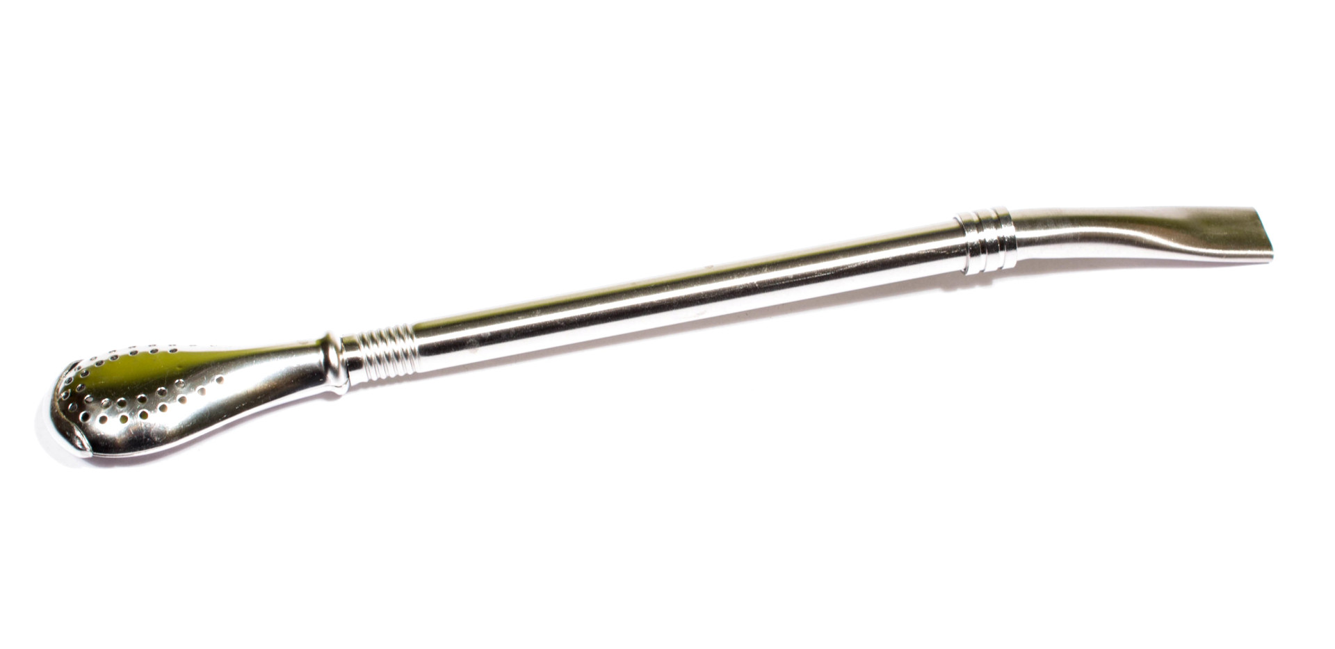Argentyńska nierdzewna bombilla a o długości 19,5 cm, lekko wygięta. Bardzo dobrze filtrująca, z rozkręcanym sitkiem. Dostępny model z gładką rurką i 1 pierścieniem.