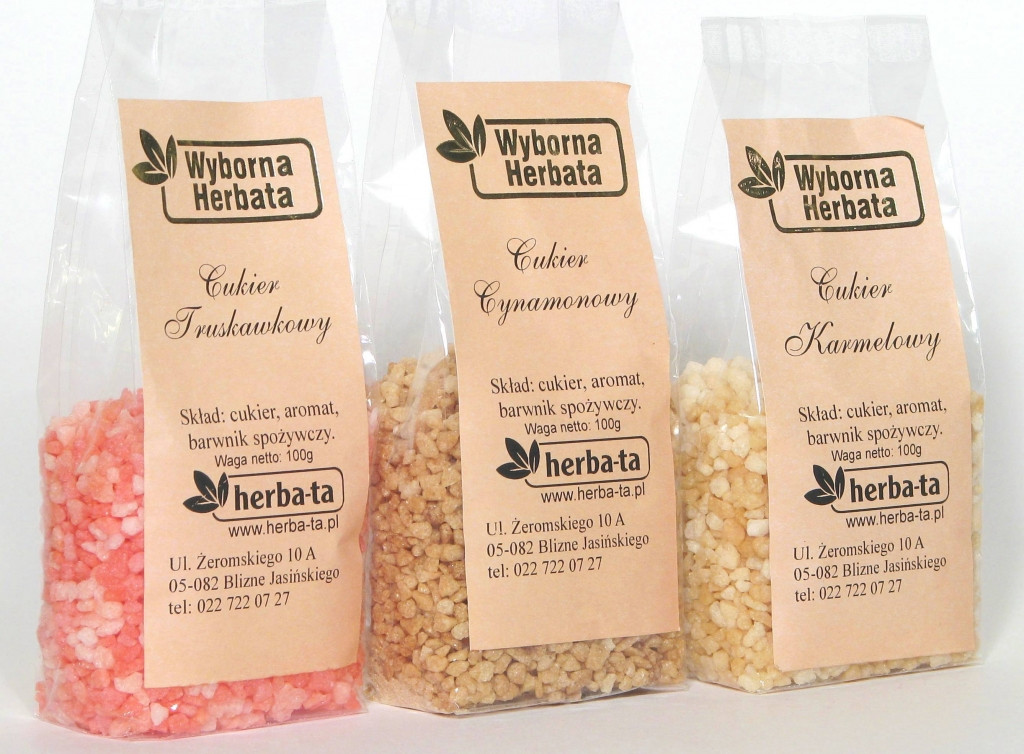 Działacze kucharze wierzą, że podawanie potraw jest niemal równie ważne, co sam ich smak. Dlatego w hurtowni Herba-ta oferujemy cukier smakowy w różnych barwnych odmianach. Obok zwykłej słodyczy doda on odrobinę wykwintnego aromatu do prostych herbat. Cukier smakowy ma kolorowe kryształki wielkości kilku milimetrów. W cukiernicy prezentują się one znacznie atrakcyjniej niż zwykły cukier biały. Dodatek ten można także kreatywnie wykorzystać do ozdabiania drinków. W chłodnych napojach drobinki będą się stopniowo rozpuszczać, powoli uwalniając smak. Cukier smakowy nada się także do kreatywnych deserów, np. jako posypka tortu lub lodów.