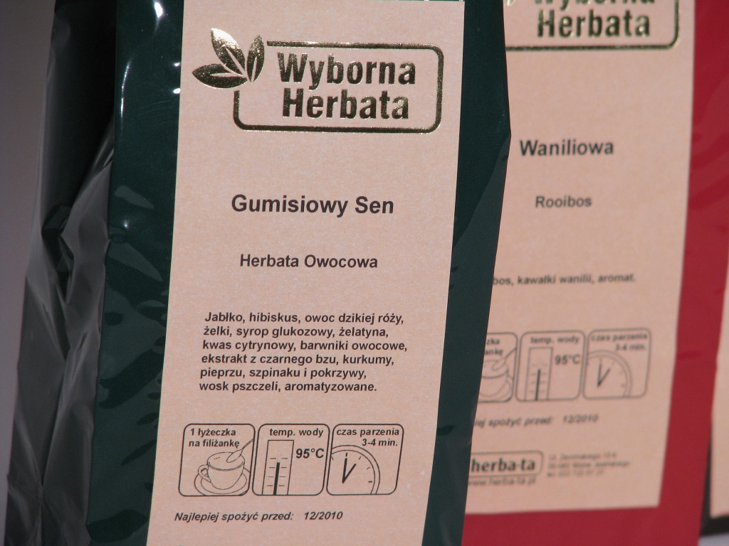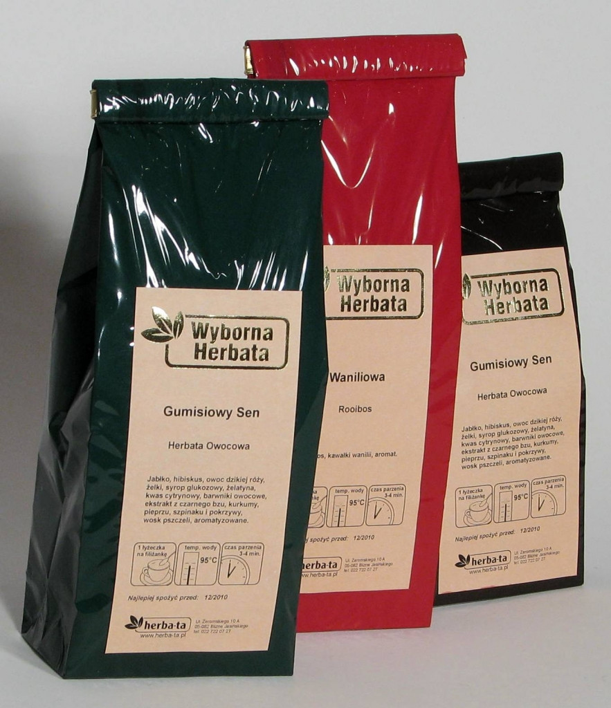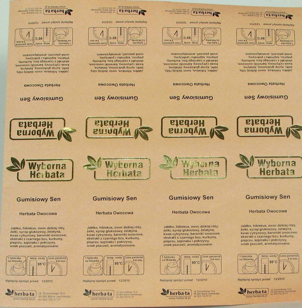 Eleganckie etykiety ze złoconym napisem, nazwą herbaty oraz opisem i sposobem jej parzenia. Możliwość umieszczenia Twojego logo i adresu!