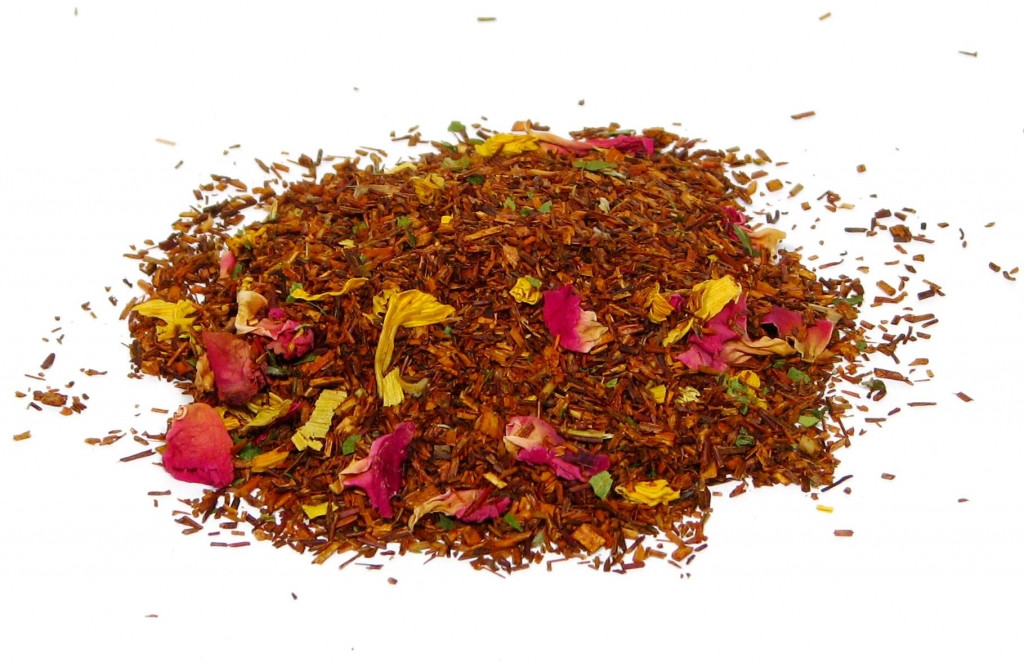 Składniki: Rooibos (Aspalat prosty), liść jeżyny, kwiat słonecznika, płatki róż, aromat
