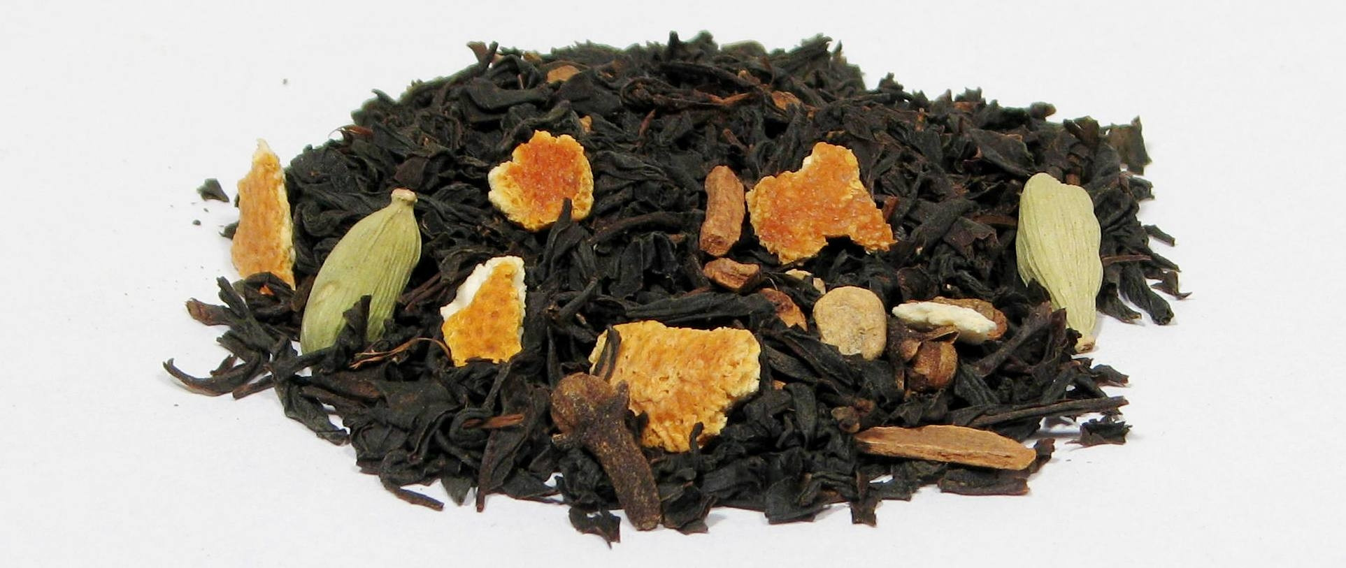 Składniki: czarna herbata, cynamon, skórka pomarańczy, imbir, kardamon, goździki, aromat