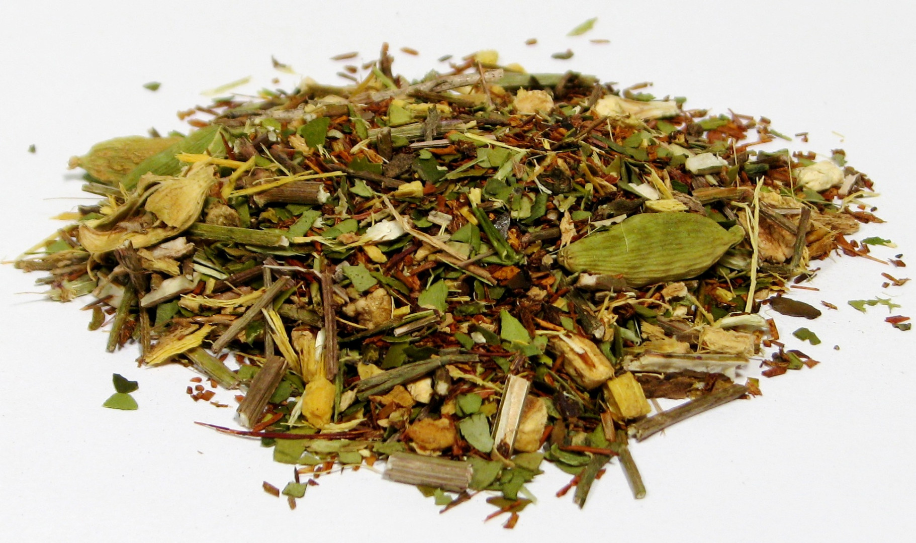 Imbir to jedna z najstarszych roślin medycyny chińskiej - pobudza krążenie krwi, wspomagają nawilżenie i dotlenienie skóry, neutralizuje toksyny, ułatwia trawienie, przyswajanie i asymilację pokarmów. Yerba Mate - Południowo-amerykański napój narodowy z liści ostrokrzewu paragwajskiego, zawiera duże ilości kofeiny, hamuje apetyt. Lukrecja jest naturalnym środkiem wykrztuśnym. Pobudza wydzielanie śliny i innych soków trawiennych przewodu pokarmowego. Leczy kaszel, przeziębienie i zaflegmienie, możemy nie obawiać się zapalenia woreczka żółciowego i zaparć. Werbena jest stosowana głównie w łagodzeniu bólów migrenowych, czasem przy bezsenności, ma zdolność do skutecznego rozpuszczania kamieni moczanowych. Kardamon - na dolegliwości układu pokarmowego, takie jak niestrawności, wzdęcia, skurcze żołądkowe. Posiada przyjemny smak i pomaga znieść smak mniej smacznych ziół. Jest używany w Indiach w czasie astmy, zapalenia oskrzeli, kamieni nerkowych, osłabieniu. W Chinach stosowany w leczeniu nie trzymania moczu oraz jako środek odżywczy, wzmacniający organizm. Kardamon jest skutecznym środkiem na pozbycie się nieprzyjemnego zapachu z ust.
