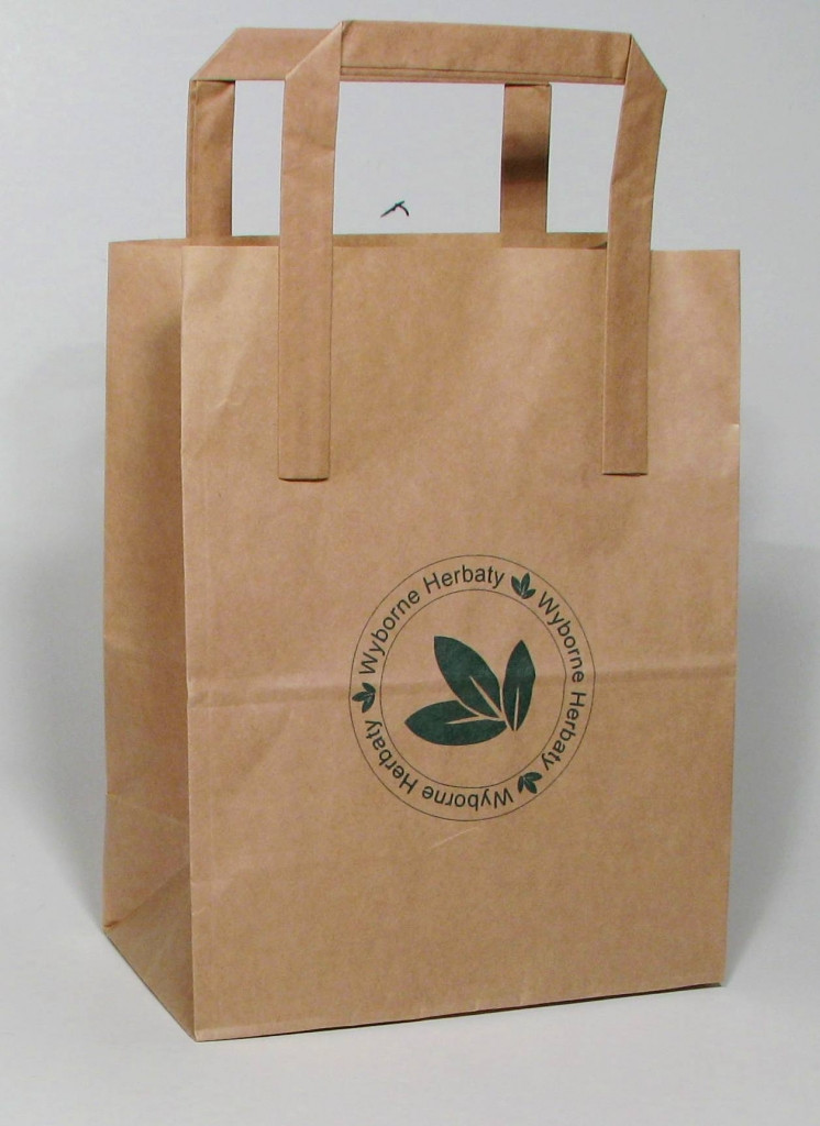 Torba brązowa Eko z uchami mała; pojemność 5 litrów, wymiary 18 cm x 10,5 cm x 23 cm.