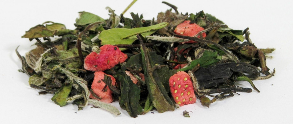 Składniki: herbata biała Pai Mu Tan, truskawki liofilizowane, aromat