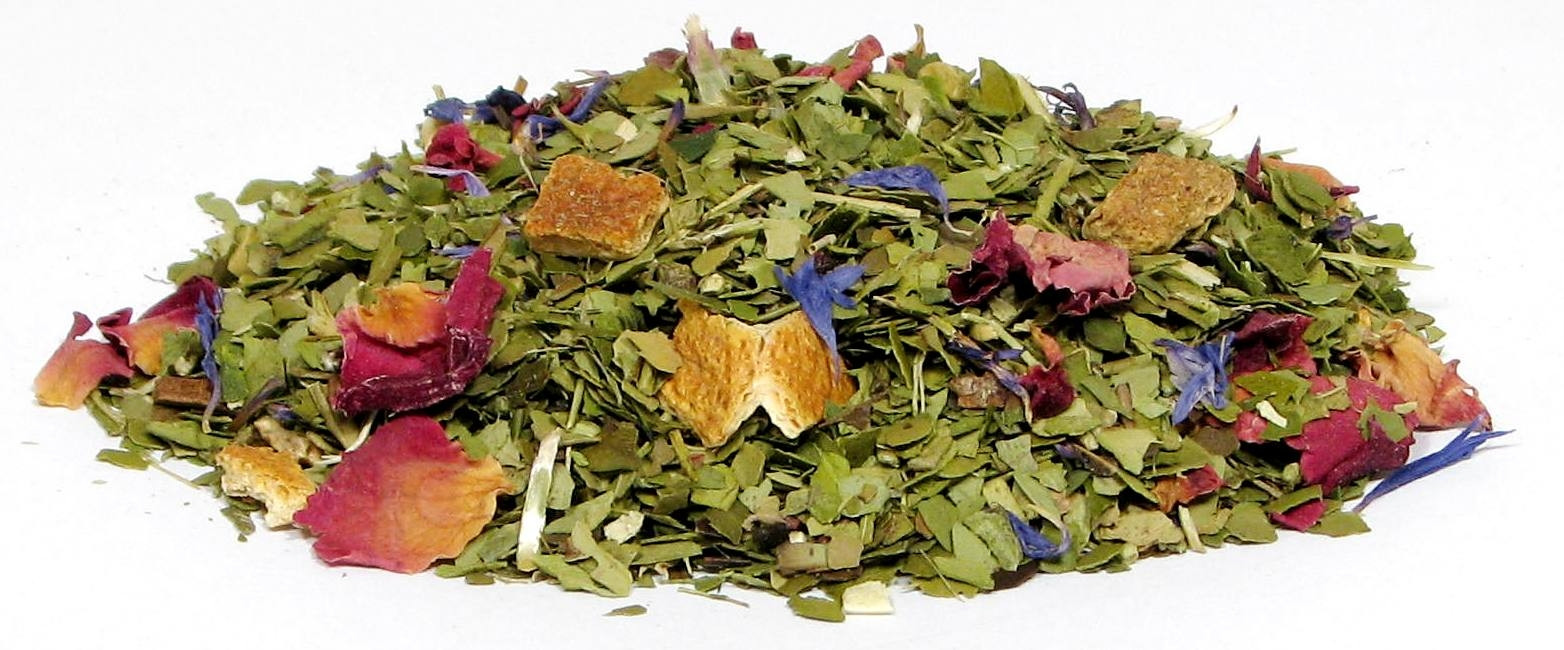 Skład: Yerba mate, pomarańcza, cynamon, płatki róży i bławatka, aromat.